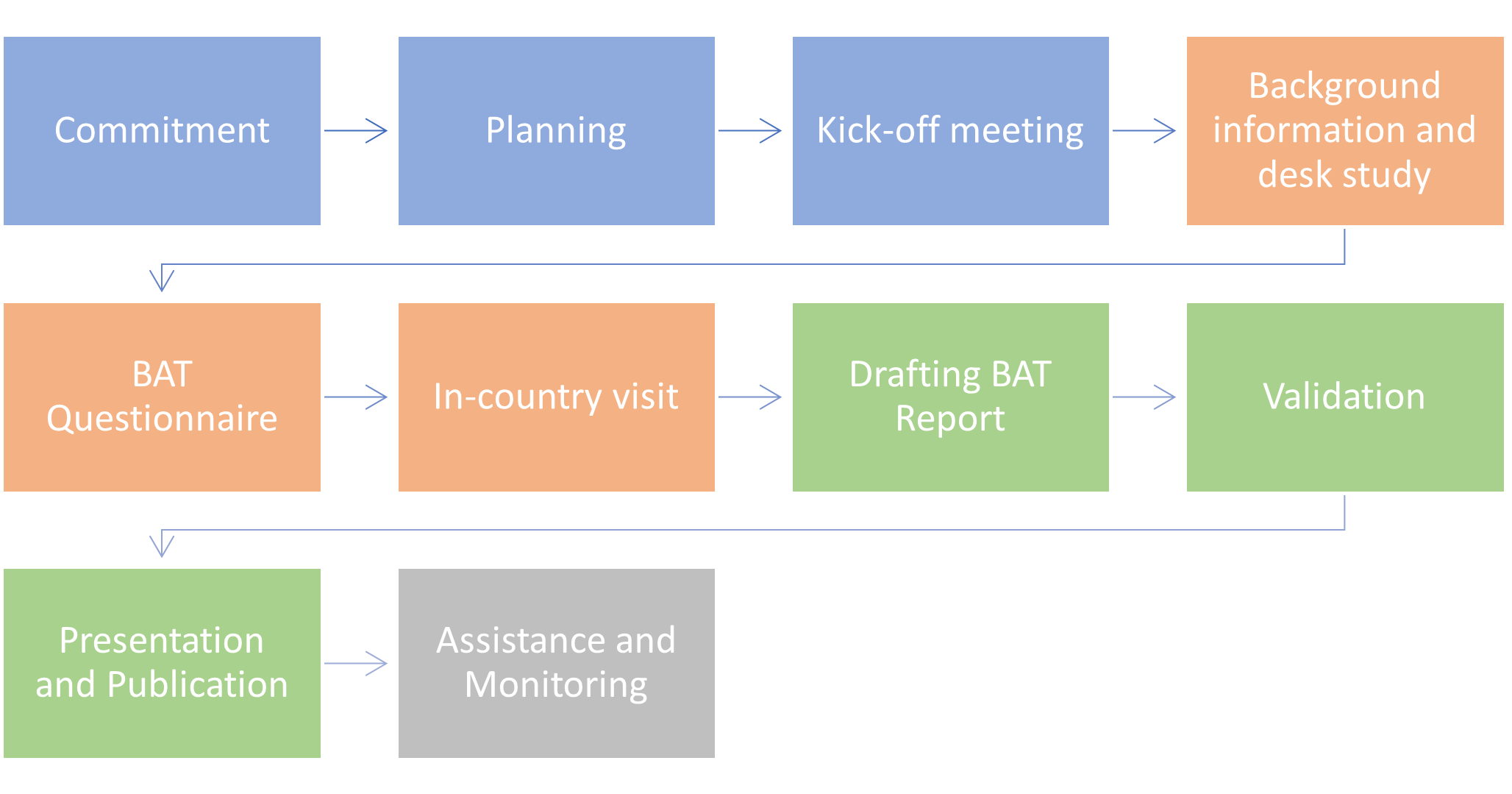 The B.A.T. is initiated upon request by the tax authorities of a country. The process comprises four phases, which are divided into ten steps, as illustrated below, and are conducted by a qualified assessment team.